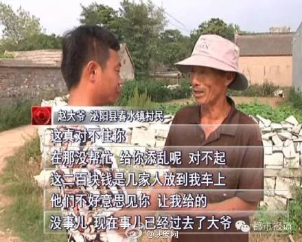 泌陽哄搶蘋果事件后,村民們認識到做錯了事,陸續主動退賠道歉,車主已收到2680元退賠款。趙大爺說,把蘋果拉回家后他的心一直揪著,特別是看電視后,總想著向車主賠禮道歉。道歉賠償后,他仍覺得過意不去,又向車主發出邀請:以后開車經過我們村,就上我們家吃飯來!