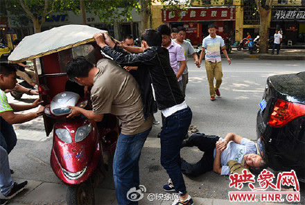 9月1日,經七路黃河路口,一名老人駕駛老年代步車側翻,左腿被壓車下。路過市民紛紛停下,眾人合力抬車將老人救下。據悉老人駕車帶老伴兒去醫院檢查,為避免突然右轉的電動車,緊急剎車導致側翻,經檢查并無大礙。