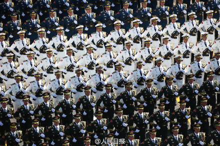 中國閱兵史上的首次設置合唱團,一千多名隊員全部由總裝、海軍、空軍所屬院校的學員組成,為網友們奉獻了“最霸氣的現場演唱會”。