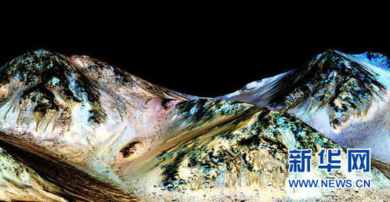 9月28日,在美國首都華盛頓,這張由美國航天局和亞利桑那大學聯合發布的圖片顯示,火星山丘上的“季節性斜坡紋線”是火星表面有液態水的有力證據。美國航天局28日宣布,在火星表面發現了有液態水活動的“強有力”證據。