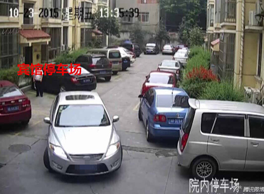 照片上顯示,視頻記錄于2015年10月23日下午13點35分至16點39分。其中包括,兩個人駕駛車牌號為川A37SXX小轎車來到賓館后,唐某先行下車開房并于14:43走進房間,四分鐘后,高某出現在視頻中,走進唐某已進入的房間。