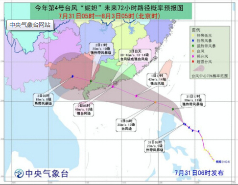 因為“妮妲”的到來,中央氣象臺也于7月31日18時發布臺風橙色預警,在此之前,來自中國氣象局應急辦消息,中國氣象局7月31日10時啟動重大氣象災害(臺風)三級應急響應。
