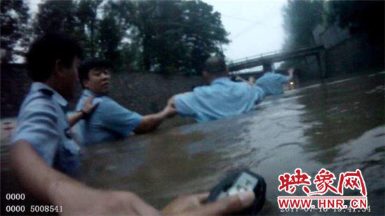 7月16日19時,新密市突降暴雨。19時30分許,正在附近執行任務的新密市公安局西大街派出所民警呂鵬輝和輔警張靖、韓耀鵬、張文龍、張永康等接110指令:于家崗鐵路橋處有人被困在水中,請馬上前去解救。