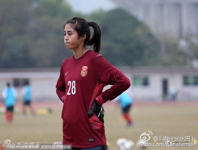 女足門將趙麗娜訓練時嘟嘟臉照萌翻網友