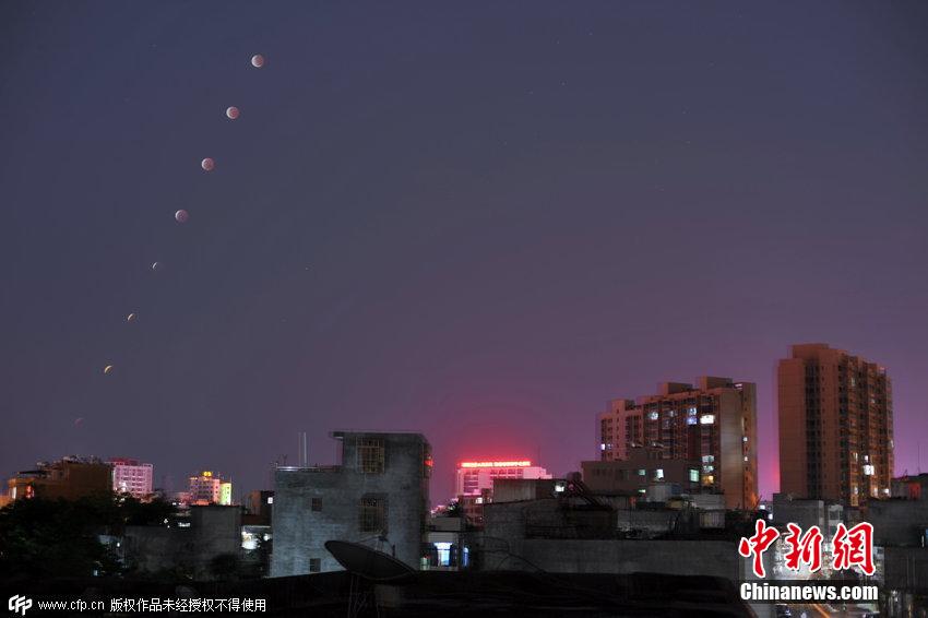 4月4日,深圳,月全食,一輪紅月亮現身夜空。(合成)鄧飛/CFP