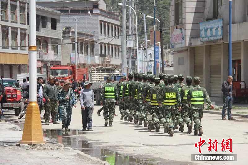 5月12日下午15點05分,尼泊爾再次發(fā)生里氏7.5級地震,吉隆方向震感強烈。地震發(fā)生后,機動支隊二大隊立刻組織22人的救助小組趕赴幫興村進行救援,挨家挨戶開展搜救,并轉(zhuǎn)移和安撫受災(zāi)群眾。在吉隆鎮(zhèn)街面擔負巡邏任務(wù)的官兵成功從救出1名受傷群眾,并及時將其送往醫(yī)療點進行醫(yī)治。目前,大隊官兵正繼續(xù)對附近村莊進行排查。中新社發(fā) 楊鴻輝 攝