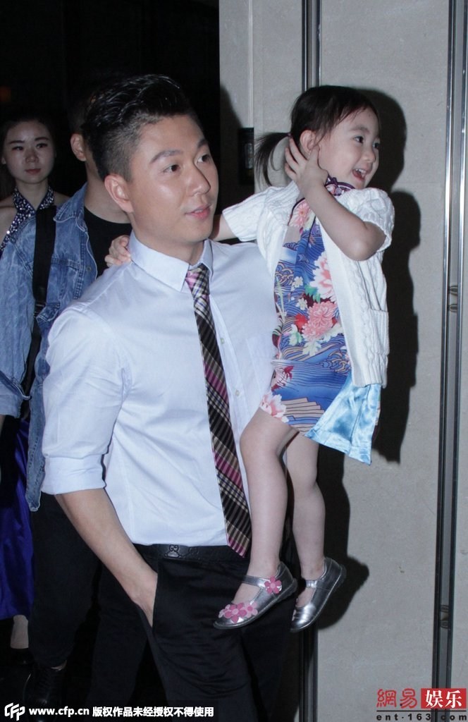 近日李小鵬抱女兒快步離開活動現場。女兒奧莉身穿花旗袍配白色外套,還不停做表情賣萌搶鏡。