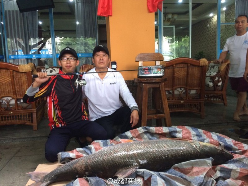 昨日下午,在成都商報記者的見證下,劉氏父子為這條大魚量了身高、稱了體重:身長1.63米,重98.4斤。