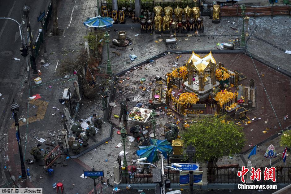 四面佛附近區(qū)域一片狼藉。泰國總理巴育稱,這起在宗教圣地發(fā)生的炸彈爆炸事件是泰國遭受的“有史以來最嚴(yán)重襲擊”。