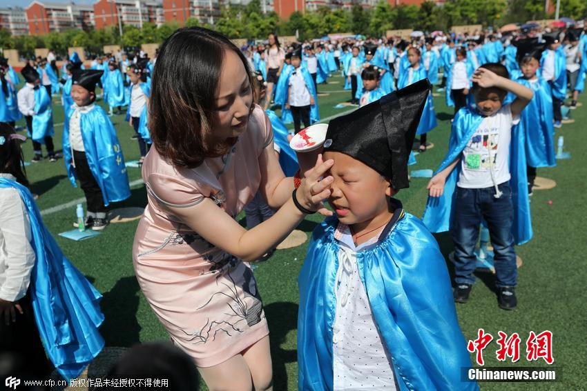 當地書法家在入學儀式上為一年級學生“點朱砂啟智”。 圖片來源:CFP視覺中國