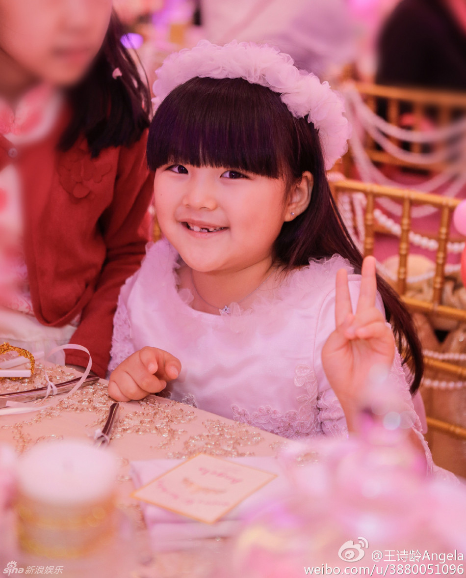 新浪娛樂訊 10月13日是Angela王詩齡6歲的生日,李湘王岳倫特別為她辦生日派對。宴會現場一片粉色十分夢幻,王詩齡頭頂花環似小公主。