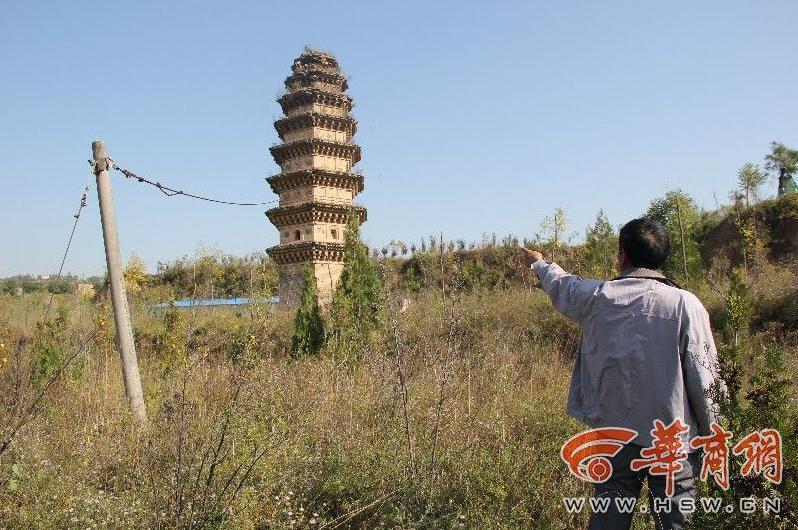 12日,住在離塔不遠處的村民趙先生告訴華商報記者,在他的印象中,這座塔發(fā)生傾斜已經(jīng)有20多年了,大約在2005年前后。銅川新區(qū)管委會的工作人員在塔身上系上了一根鋼索,目的是為防止塔身繼續(xù)傾斜。“趕緊把這塔保護一下,再不保護這塔可能就沒有了。”趙先生說,除了傾斜、風蝕,導致塔體破壞外,偶爾還有盜墓賊光顧,他們在他周圍打了好幾個盜洞,這也加速了塔的破壞。