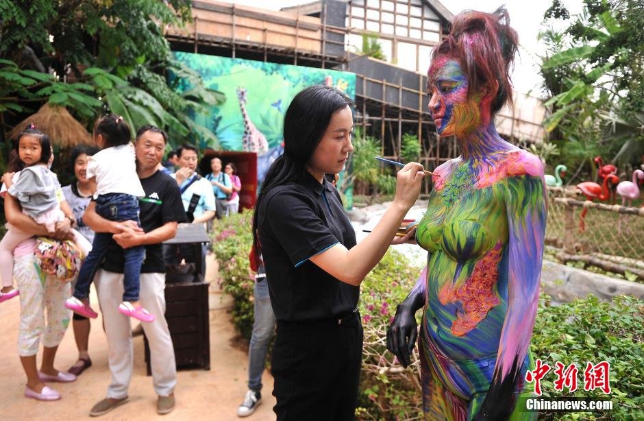 據悉,三亞彩色動物園舉辦此次美女人體彩繪活動,旨在傳播愛護動物、尊重生命以及人與動物和諧共處的理念,讓更多的人了解并參與到保護動物的隊伍中來。 陳超 攝
