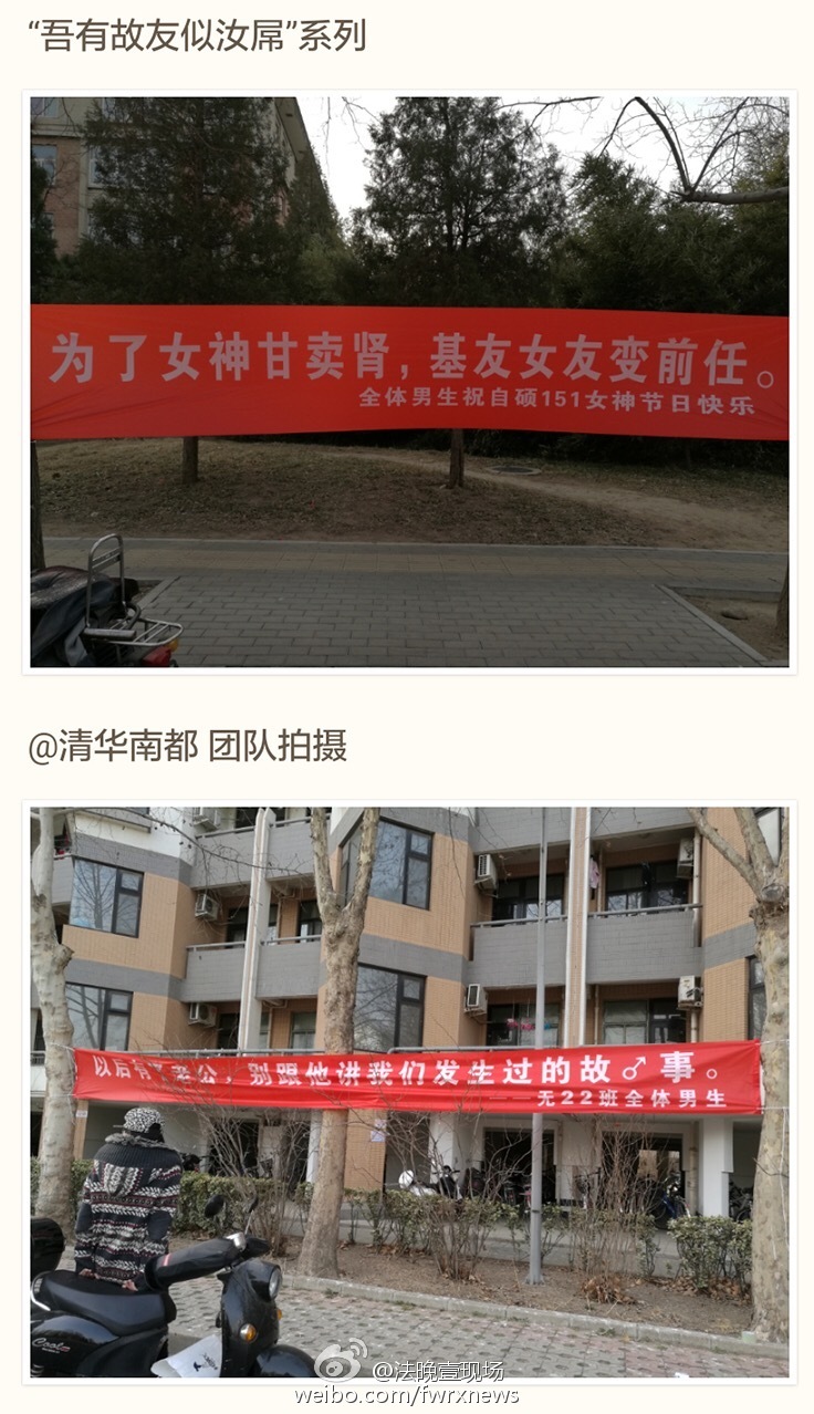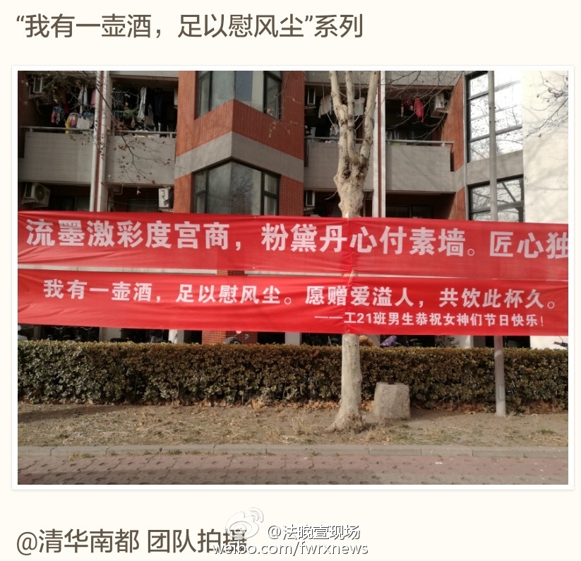 清華大學懸掛橫幅喜迎3.7女生節——文科生實在看不懂理工科的公式。