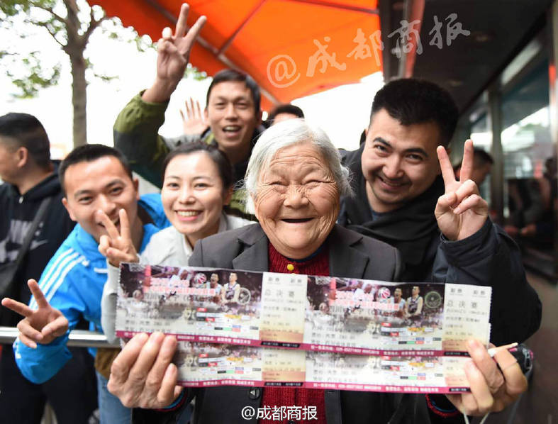 因?yàn)楣ぷ鲀鹤訜o(wú)法前來(lái)買(mǎi)票。孟老太凌晨4點(diǎn)半就執(zhí)意到省體育館排隊(duì)為兒子買(mǎi)票,但在她之前,已經(jīng)排了接近千名球迷。上午9點(diǎn)半開(kāi)始賣(mài)票后,孟老太隨著人群慢慢移動(dòng),站累了,就在隨身帶著的小凳子上坐一會(huì)。隨著天色漸亮,周?chē)抨?duì)的球迷發(fā)現(xiàn)了這位白發(fā)蒼蒼的老太太。在問(wèn)明情況后,一名女球迷主動(dòng)聯(lián)系到在附近維持秩序的玉林派出所民警,希望特殊情況能夠特殊對(duì)待。 圖片來(lái)源:成都商報(bào)