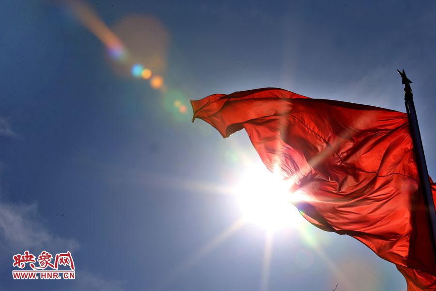 藍(lán)天白云下的紅旗飄飄  段晉哲/圖