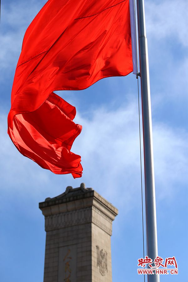 人民英雄紀(jì)念碑與紅旗遙相呼應(yīng)  段晉哲/圖