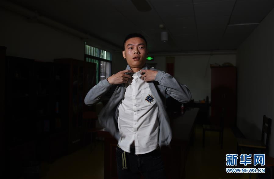 “替身”王峰來自湖南婁底,28歲的他在長沙南仁專科醫(yī)院工作。王峰在網上看到招募消息后,立刻跟帖自薦報名,由于年齡和身材與黃舸接近,他成了黃小勇最終選定的扮演黃舸的人選。新華社記者 李尕 攝 圖片來源:新華網