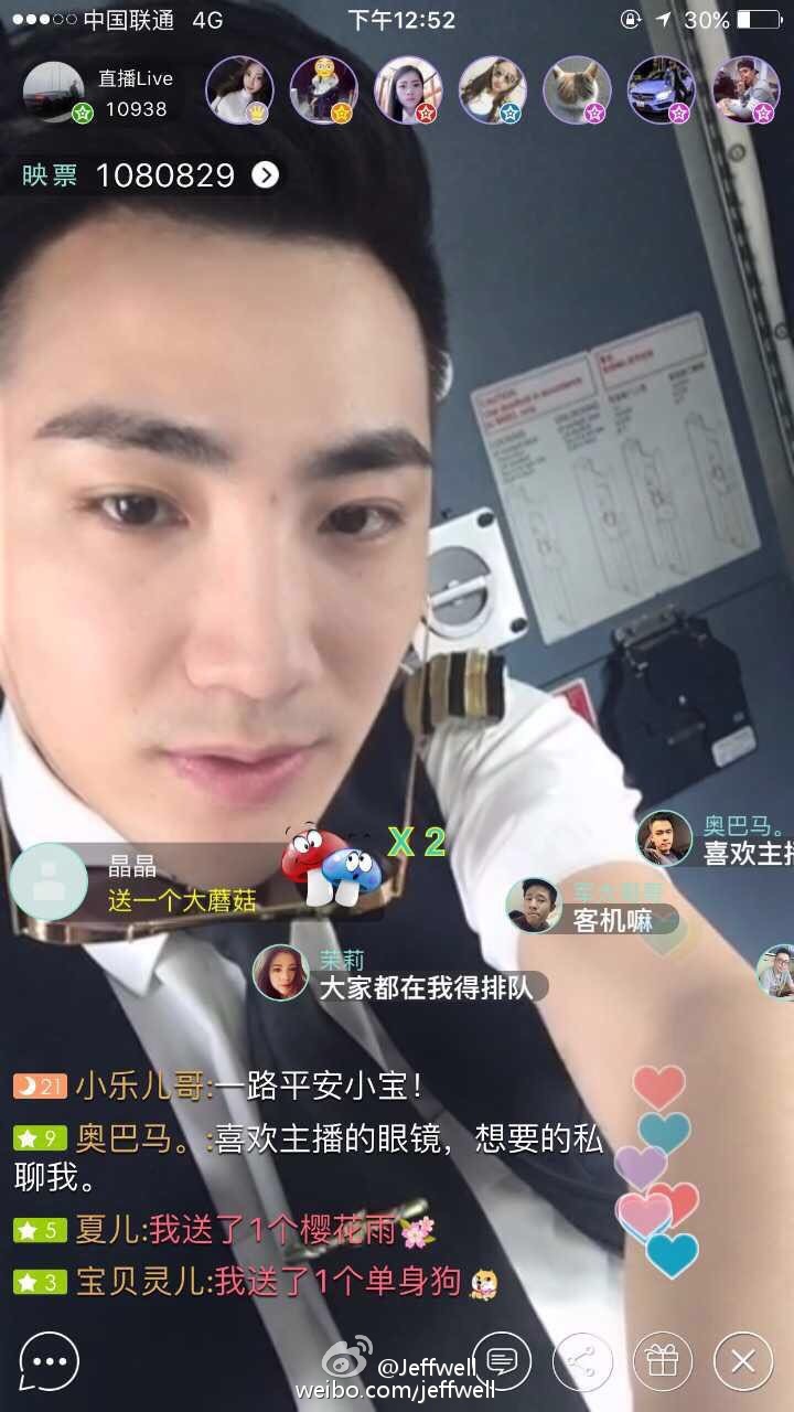 2.   31日下午,有網友在微博上曝出,國航一男飛行員在直播平臺上放出其飛行時的直播視頻。從視頻截圖中可見,該男子身后的背景為國航飛機駕駛艙,肩章顯示其本人為副駕駛。截圖顯示,多名網友贊嘆其長得帥,并贈送虛擬禮物。