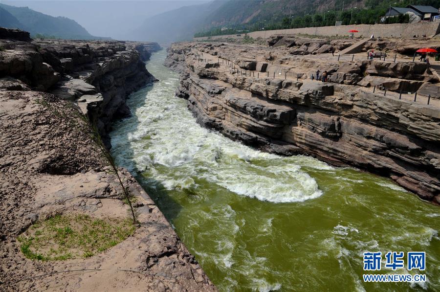 5月10日,游客在黃河壺口瀑布景區(qū)游覽。自4月下旬以來(lái),受上游降雨偏少和黃河干流來(lái)水量減少影響,河水流速變緩,泥沙沉淀,位于山西吉縣和陜西宜川縣交界的壺口瀑布水色明顯變清,呈現(xiàn)出別于日常的“清流飛瀑”景觀。新華社發(fā)(呂桂明 攝)