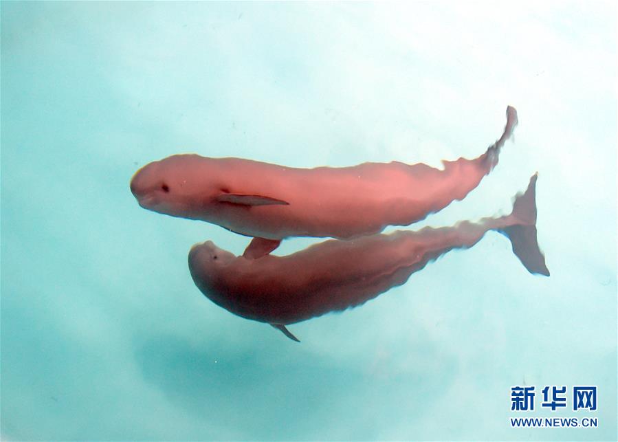 5月10日,武漢白鱀豚館兩頭人工飼養的江豚正在嬉戲,它們處于“戀愛期”,有望繁育出下一代。近日,中科院水生所武漢白鱀豚館的一只江豚經過十余個月的“孕育”即將臨盆。這只江豚名叫“F9”,年齡約7歲,是2010從鄱陽湖搬家到這里的。長江江豚是一種古老的水生哺乳動物,在地球生活已有2500萬年歷史,被稱為長江生態的“活化石”,僅分布于長江中下游干流及與之相連的鄱陽湖、洞庭湖兩個大型通江湖泊。據科考研究,長江流域江豚數量已不足千頭,比國寶大熊貓還要少。目前江豚保護主要以遷地保護和人工飼養為主,其中人工飼養保護地在中科院水生所武漢白鱀豚館,這里目前共飼養著6頭長江江豚。 新華社記者程敏 攝
