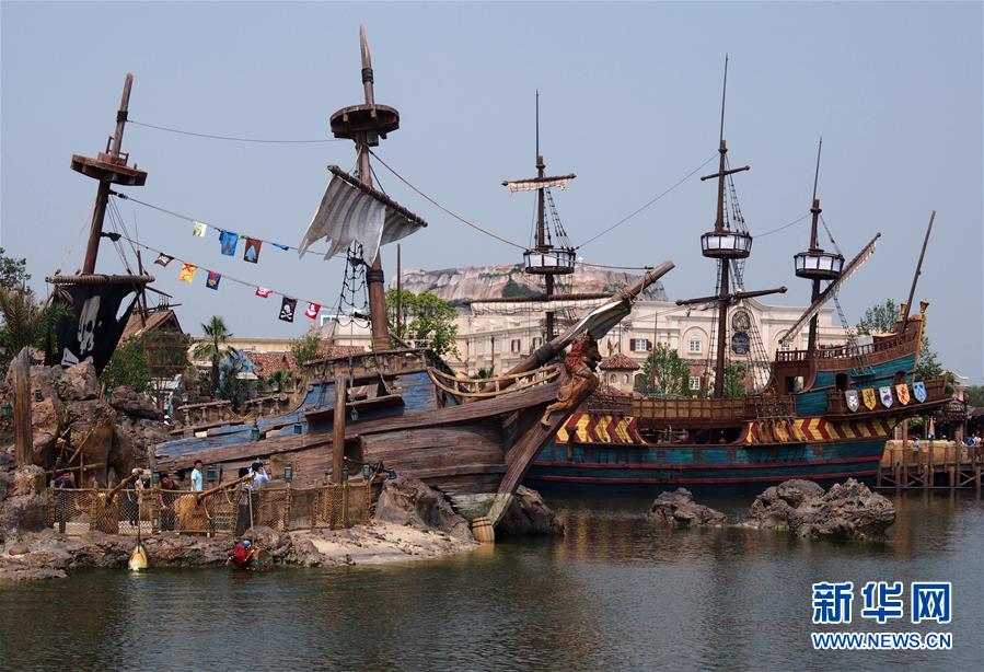 在上海迪士尼樂園里,參觀者劃著“探險家獨木舟”駛入“寶藏灣”(5月11日攝)。 5月11日是上海迪士尼樂園的又一個內部測試日。在樂園運營管理方的安排下,上萬名參加測試的樂園建設者及其家屬參觀了園內部分景點和游樂設施。據悉,上海迪士尼樂園將于6月16日開幕。新華社記者 任瓏 攝