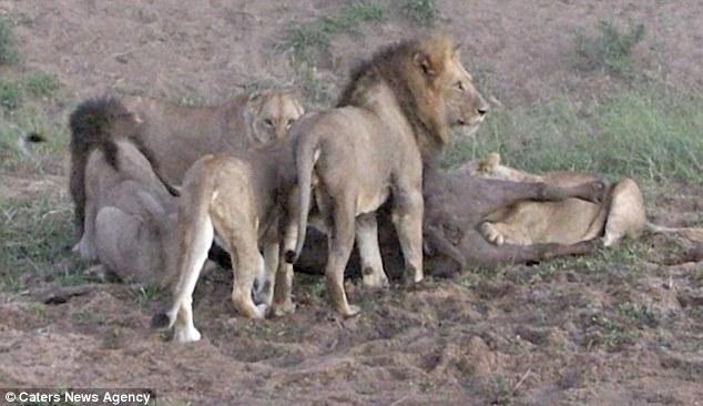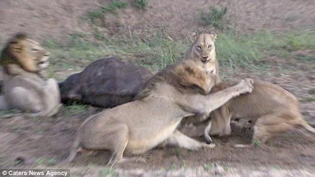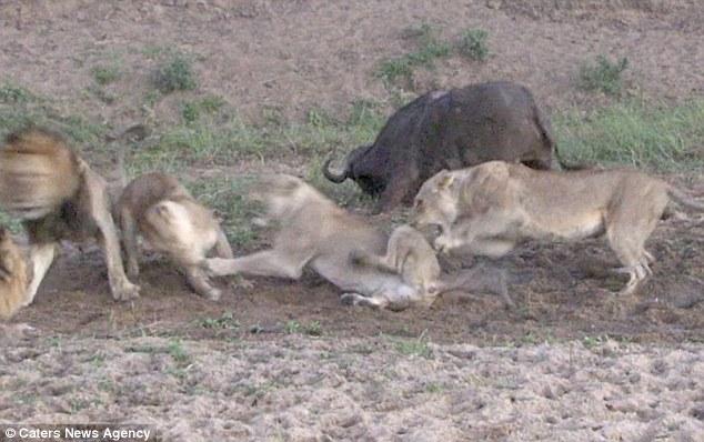 這次攻擊造成了一發不可收拾的局面,兩群獅子開始互毆決定誰先吃掉可憐的水牛。