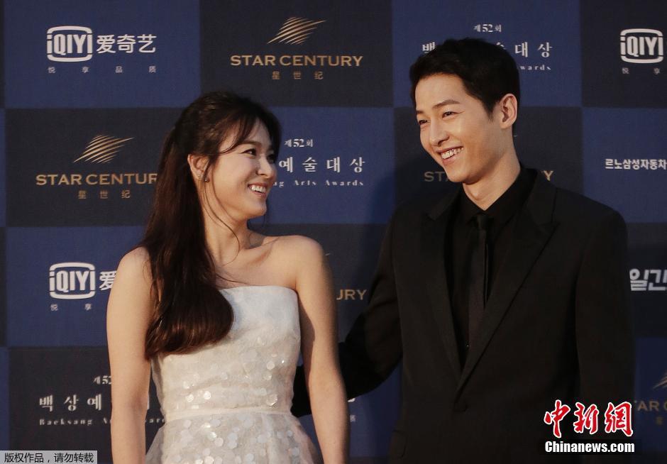 當(dāng)?shù)貢r(shí)間6月3日,韓國(guó)年度電視、電影盛事“第52屆百想藝術(shù)大獎(jiǎng)”在韓國(guó)首爾的慶熙大學(xué)登場(chǎng),宋仲基和宋慧喬憑借《太陽的后裔》一舉拿下人氣大獎(jiǎng)。宋仲基更在臺(tái)上感動(dòng)告白搭檔宋慧喬“謝謝在我身邊的宋慧喬”。