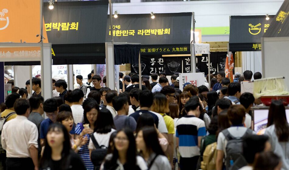 拉面(編者注:相當于國內的方便面)在韓國被成為“國民食品”,此次拉面博覽會旨在宣傳拉面的歷史和發展趨勢,提升和推進韓國拉面的品牌度和出口,同時了解和品嘗世界各國的拉面。