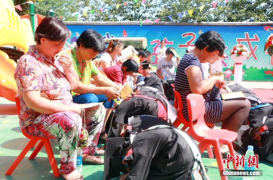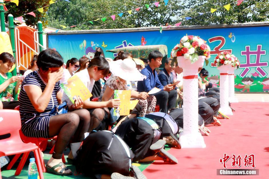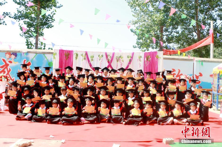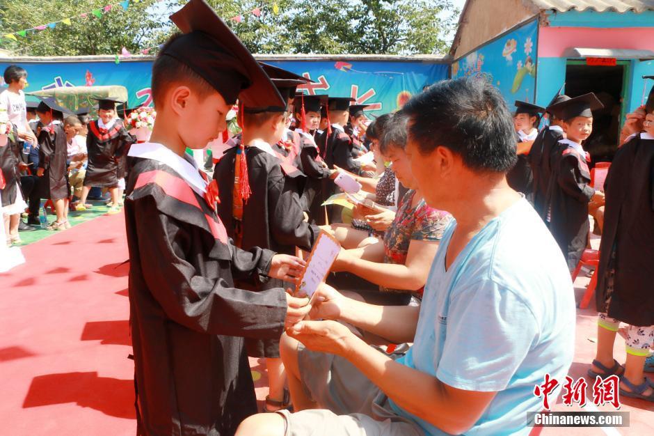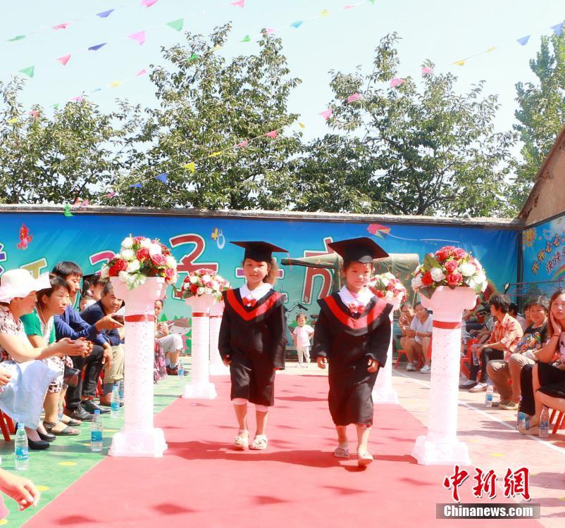 又到一年畢業季,6月20日,河南商水縣鄧城鎮留守兒童幼兒園60名孩子迎來了一場特殊的畢業典禮。孩子們身穿迷你學士服,自信地走紅毯、拋學士帽。在跪謝父母養育之恩的環節,因為大部分孩子是留守兒童,孩子們只能跪謝爺爺奶奶的照顧,許多家長在現場感動落淚。葉青 攝