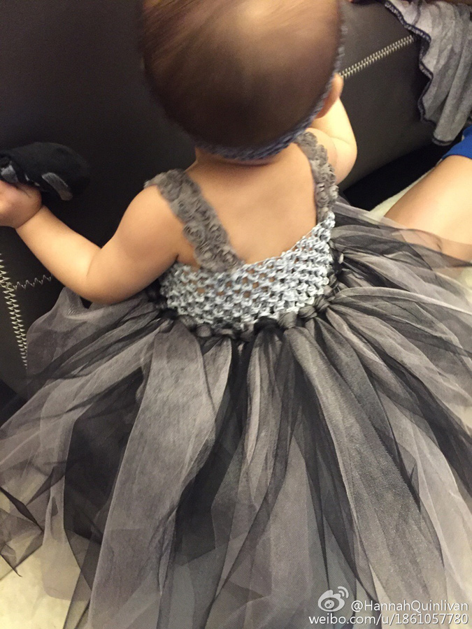 2.   6月21日,昆凌在認證微博曬出一組親手為女兒Hathaway(小周周)縫制公主裙的照片,她從選材料到縫制盡顯貼心,小周周穿上裙子露背影,畫面滿滿的溫馨。 圖片來源:昆凌認證微博