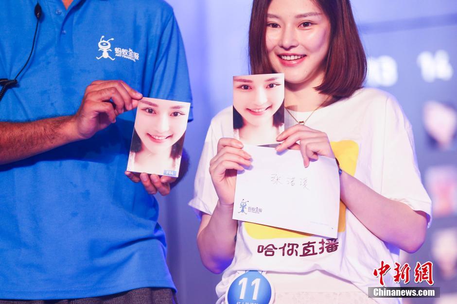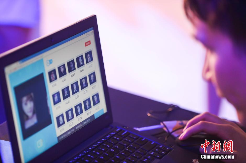 2.   2016年6月30日,杭州市上演了人機跨次元大對決,人工智能生物識別機器人“螞可”(Mark)與號稱“鬼才之眼”的水哥王昱珩進行PK:對網紅臉進行人臉識別。最終,水哥險勝“螞可”,成為這場人機大戰的最后贏家。中新社發 許康平 攝 圖片來源:CNSPHOTO