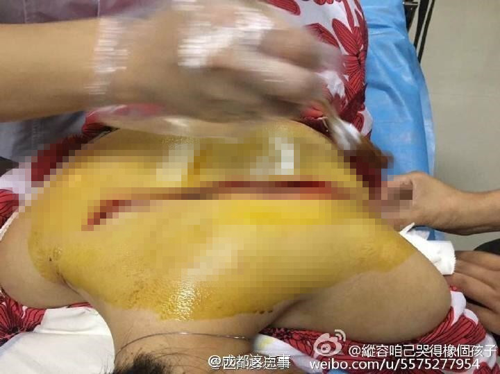 7月4日下午,有成都網友發微博稱,1日晚上9點過,她同朋友經過成都龍泉驛區航天北路美食街時,被一名騎自行車的陌生男子劃傷背部,傷口長度達32厘米,深度3公分左右。隨后,被人送往附近醫院治療。