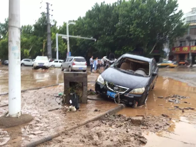 交通癱瘓,房屋坍塌,車輛受損,超市門面大量被淹,輝縣這場百年不遇的天災對輝縣造成巨大損失。