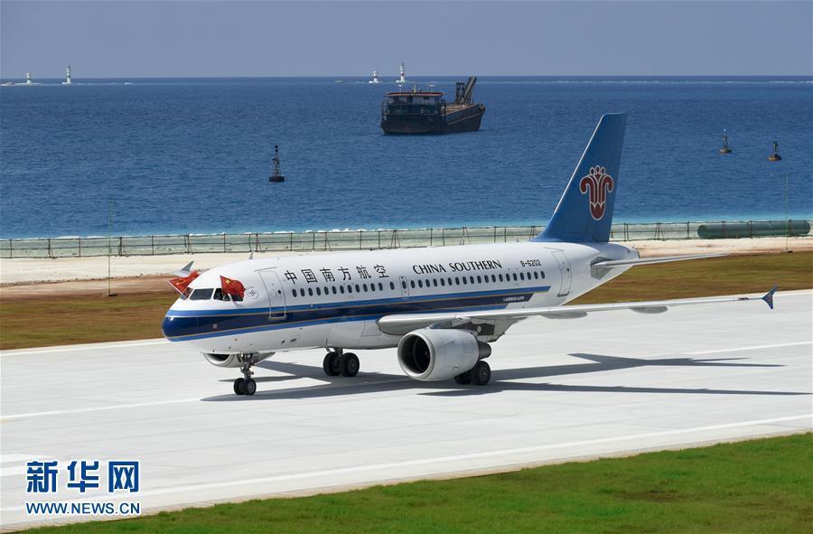 7月13日,南方航空公司的客機在美濟礁新建機場著陸。新華社記者 陳益宸 攝 圖片來源:新華網