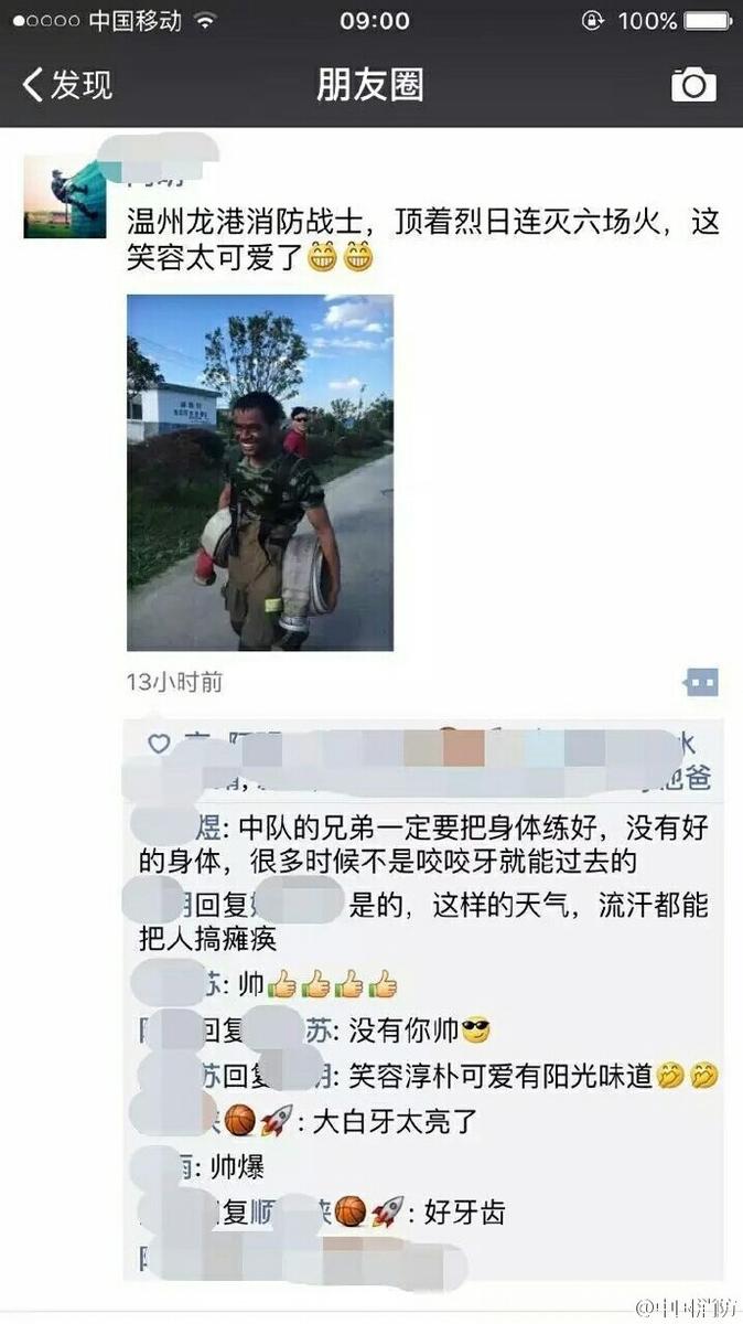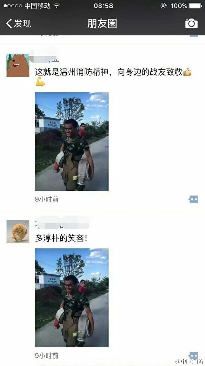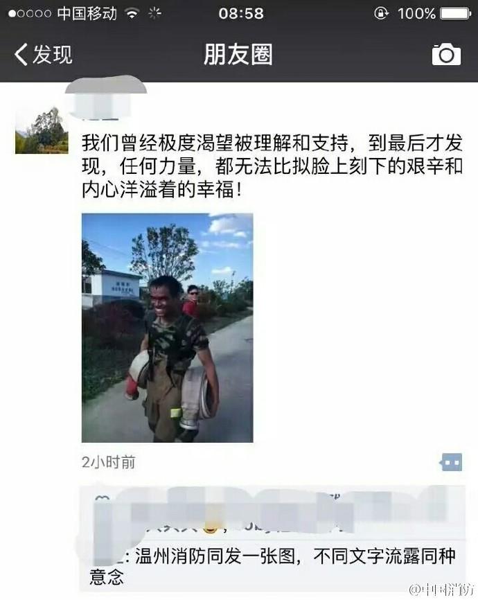 2.      這是溫州龍港消防戰士成功處置6起火災凱旋后,被抓拍到的一張照片,照片中樸實的笑容,最美的笑容,也是最美的瞬間。