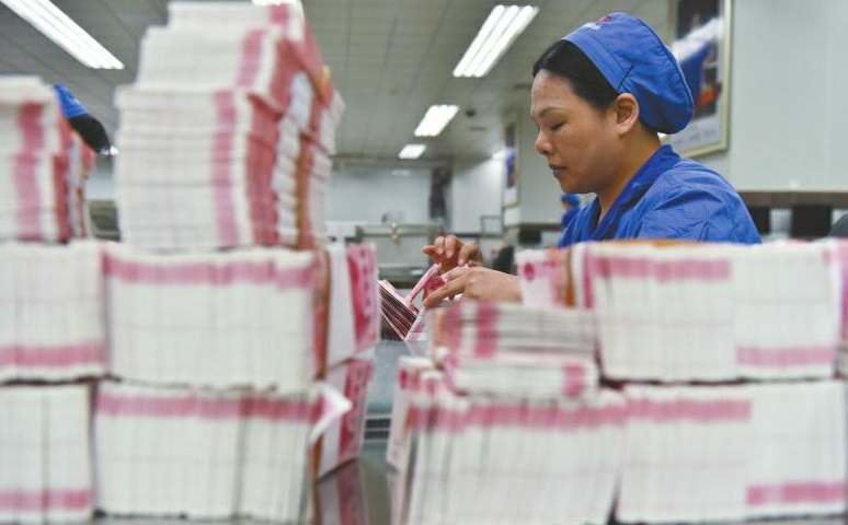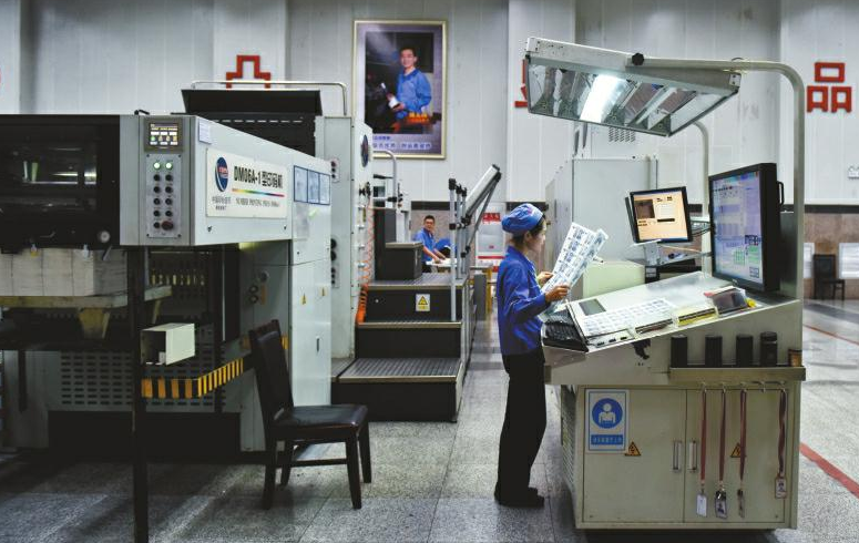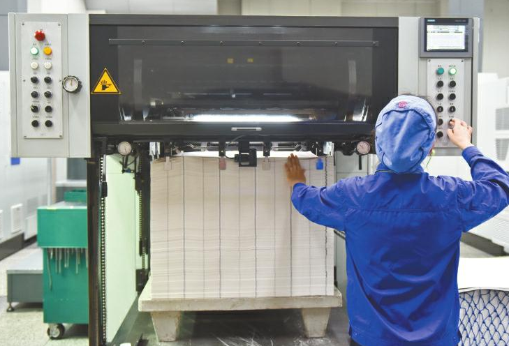 成鈔公司大門口,緊握槍支的武警駐守,在這里,有著嚴密的安檢措施。在經過層層申報審批,暫存隨身攜帶的手包和手機后,記者獲批進入生產車間。瞬間,靜謐被機器的轟鳴代替。在車間內,穿著藍色工裝的工人正有序忙碌著。在這里經過多道印鈔工序及干燥、檢驗等環節后,一張張雪白的印鈔紙“搖身一變”,成為紅紅綠綠的鈔票,整個過程前后需要耗時1個月左右。
