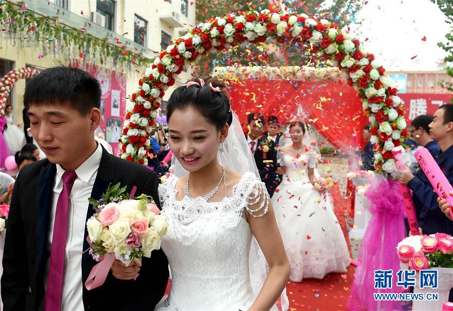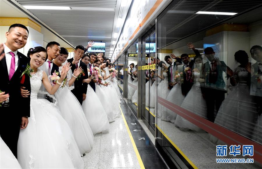 當日是中國傳統的七夕節,“緣系地鐵,情定鄭州”大型集體婚禮在鄭州軌道交通城郊線項目部舉行,來自鄭州地鐵建設一線的11對新人在百余名建設者的共同見證下步入婚姻殿堂。這些新人分別來自正在建設的鄭州軌道交通1號線二期、2號線一期等5個地鐵建設項目部。婚禮儀式后,11對新人共同試乘即將開通運營的鄭州地鐵2號線一期。新華社記者李安攝