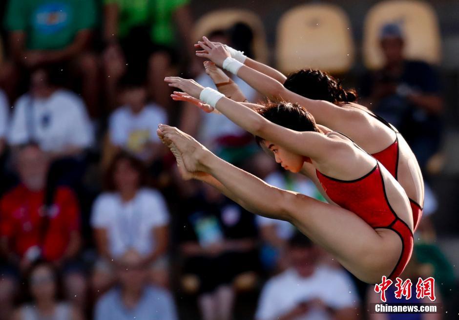 當地時間8月9日,2016里約奧運跳水女子雙人十米臺,中國選手陳若琳/劉惠瑕以354.00分獲得冠軍。這也是陳若琳收獲的第五枚奧運金牌。中新網記者 杜洋 攝