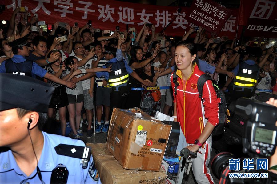 8月23日,中國女排隊(duì)員楊方旭抵達(dá)北京首都國際機(jī)場(chǎng)。當(dāng)晚,在里約奧運(yùn)會(huì)獲得金牌的中國女排回國。 新華社記者陳曉偉攝