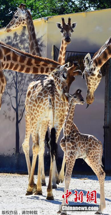 法12歲長頸鹿誕下“寶寶” 垂眼吻子母愛濃