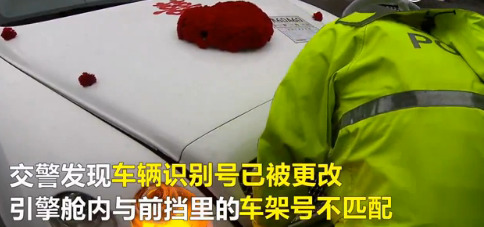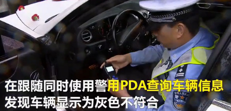 民警在跟隨過程中,使用警用PDA查詢車輛信息,發現登記車輛為灰色,明顯不是眼前的白色跑車,隨即將婚車車隊攔停后,詢問駕駛員車輛來源。