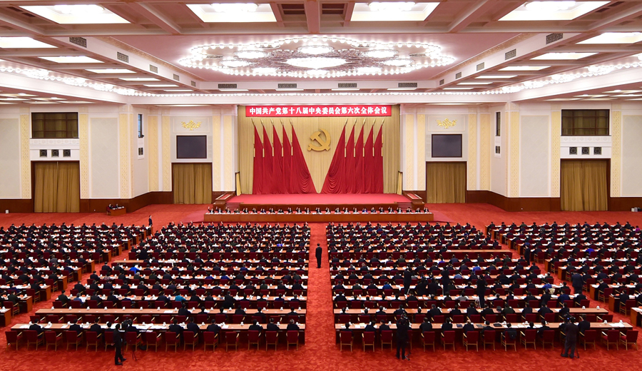 中國共產黨第十八屆中央委員會第六次全體會議,于2016年10月24日至27日在北京舉行。中央政治局主持會議。 新華社記者 張鐸 攝