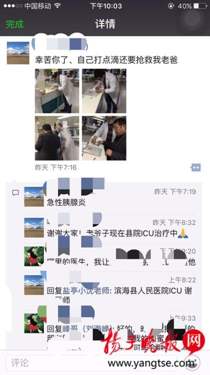 記者聯系上微信好友劉海峰,他告訴記者,昨天晚7點左右,他老爸重因病去濱海縣人民醫院搶救,進入重癥病房后,跟著一名護士去喊醫生,看到一名男醫生坐在辦公室的看病歷。“我簡單說了一下爸爸的病情,他立刻推著掛著點滴的架子跑了出來。”圖片來源:揚子晚報網
