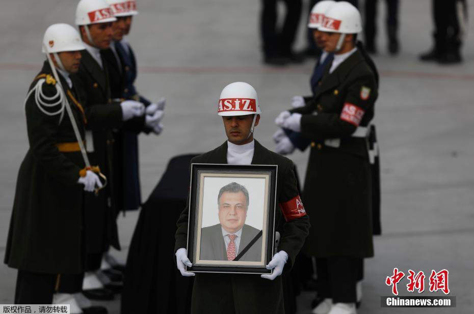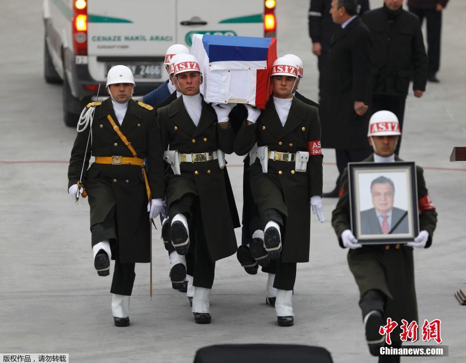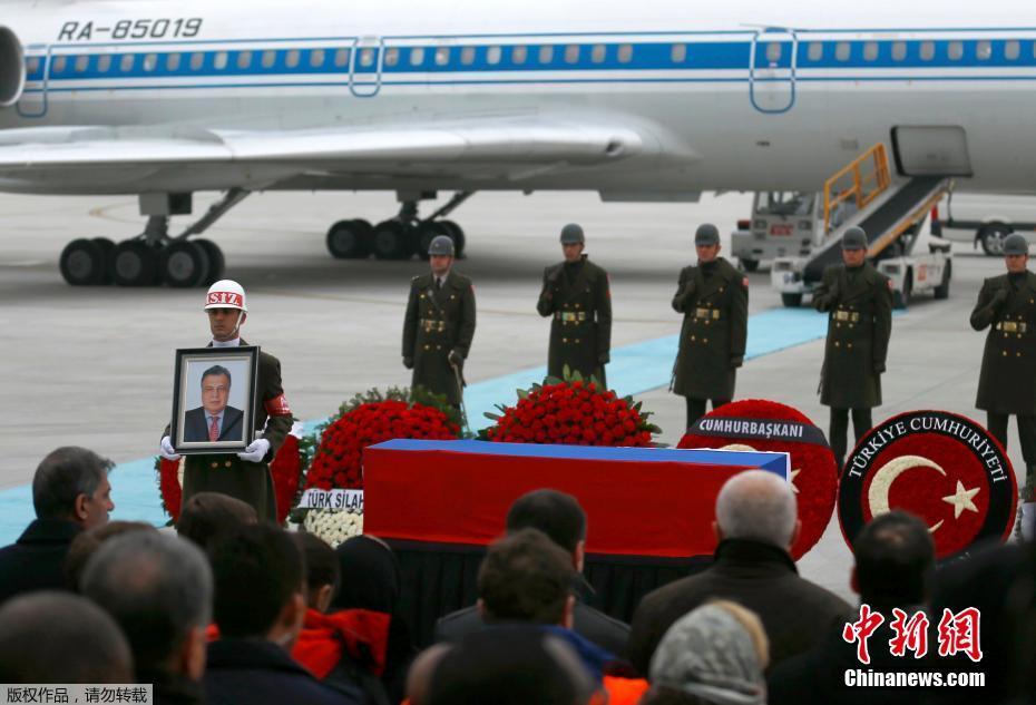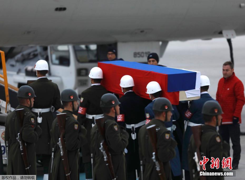 當地時間2016年12月20日,土耳其安卡拉,遇刺身亡的俄羅斯駐土耳其大使卡爾洛夫的遺體將搭載飛機返回俄羅斯。