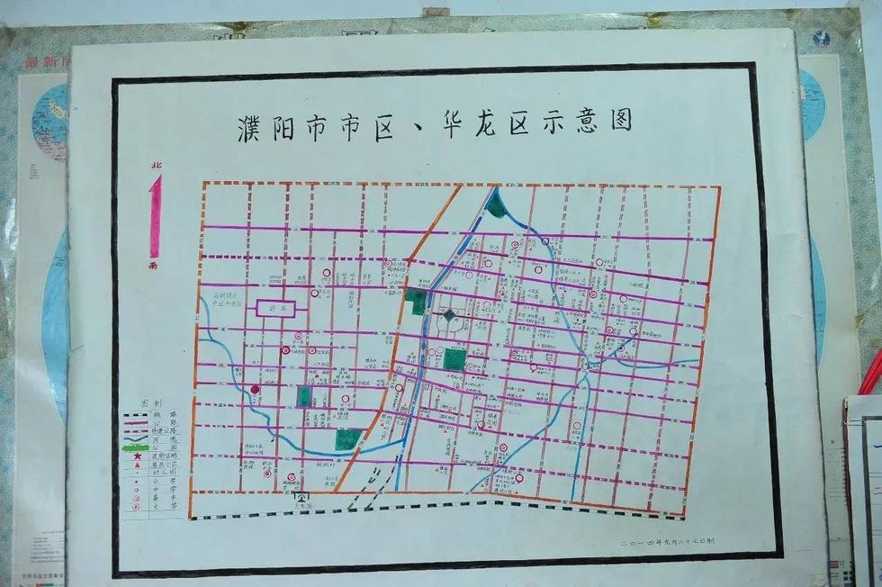 于是,76歲的他開始白天騎車走街串巷,沿途掏出紙和筆進行勾勒、記錄,標(biāo)注街道、商鋪、路線,畫出簡易地圖;晚上,他就從廚房拿出面板,當(dāng)作繪圖板認(rèn)真畫圖。就這樣,他利用兩年時間,繪制完成市區(qū)主要單位商鋪示意圖、華龍區(qū)主要單位商鋪示意圖、濮陽市道路交通圖等4張地圖,成為當(dāng)前濮陽市最新地圖。