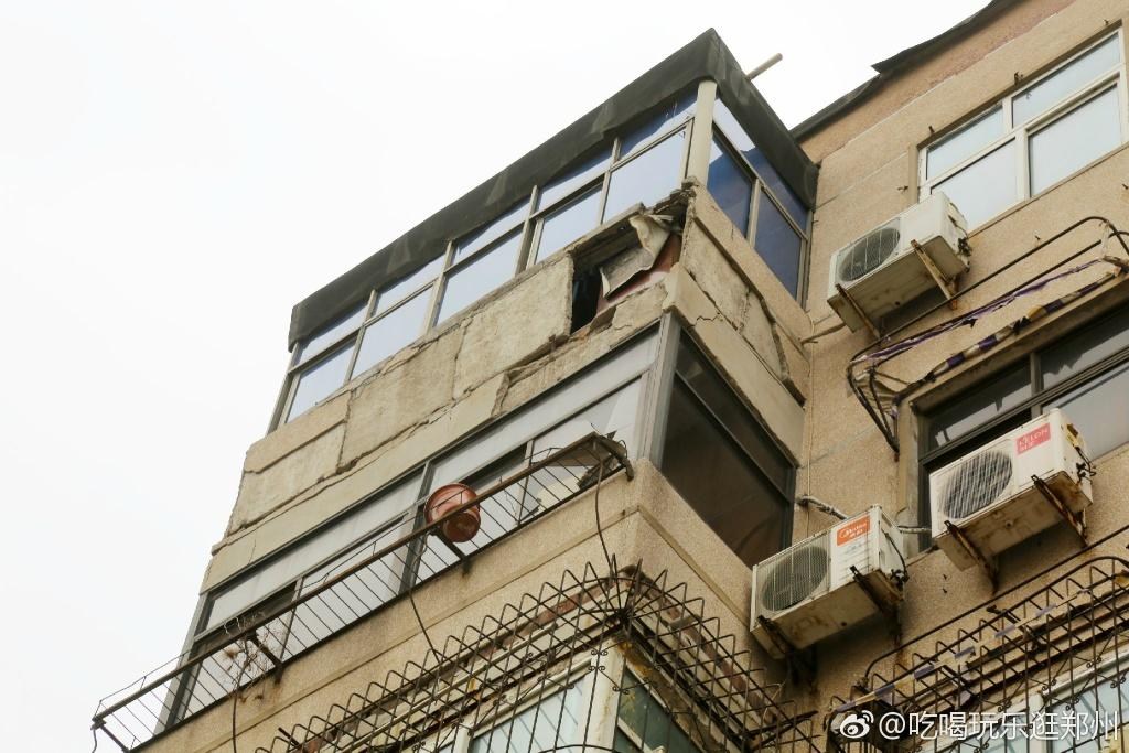 2017年3月12日,鄭州遭遇5級(jí)以上大風(fēng)襲擊,只聽“咚”“咚”幾聲,紅專路附近一棟居民樓的陽(yáng)臺(tái)因年久失修,發(fā)生大面積的倒塌。
