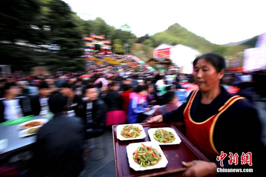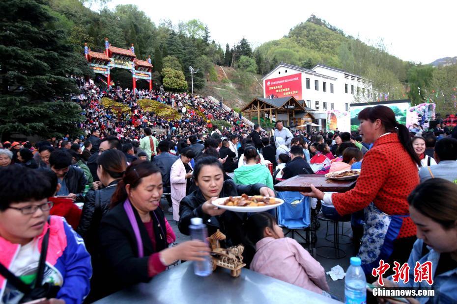 4月22日晚,河南欒川雞冠洞高山牡丹節開幕,特地舉辦千人牡丹宴,當地的特色欒川豆腐、樹芽菜以及主菜牡丹燕菜紛紛上桌,吸引上千民眾品嘗,場面壯觀。 中新社記者 王中舉 攝