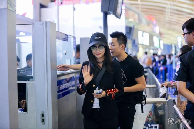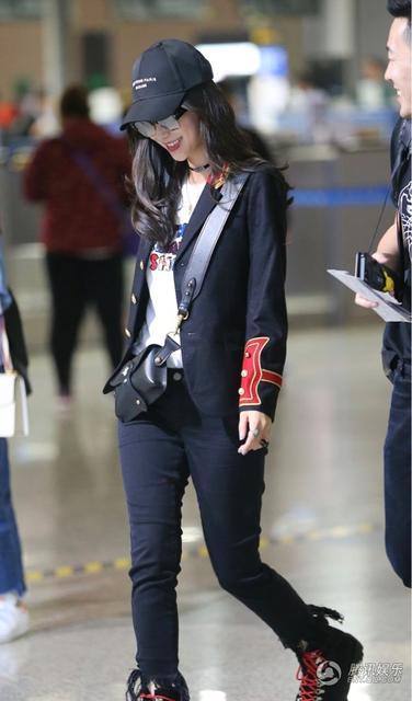 騰訊娛樂訊 23日下午,Angelababy現身上海機場,一身紅黑拼色西裝讓Baby看起來十分帥氣有型。