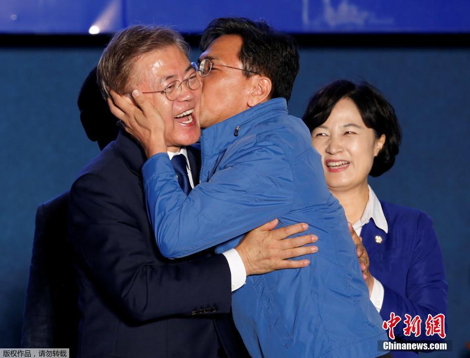 當地時間5月9日深夜,韓國第19屆總統選舉共同民主黨候選人文在寅及其競選團隊現身首爾光化門廣場,發表“勝選演說”,與支持民眾握手慶祝。據出口民調顯示,文在寅在當日進行的大選投票中以41.4%的支持率絕對優勢勝選。在選舉管理委員會公布的大部分開票結果中,文在寅得票率也遙遙領先,提前鎖定勝局。